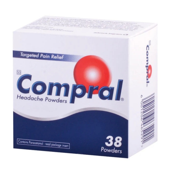 Compral Headache Powders 38 Powders are made with paracetamol and effectively combats mild pain and fever to bring you much needed relief. Made with no sugar.