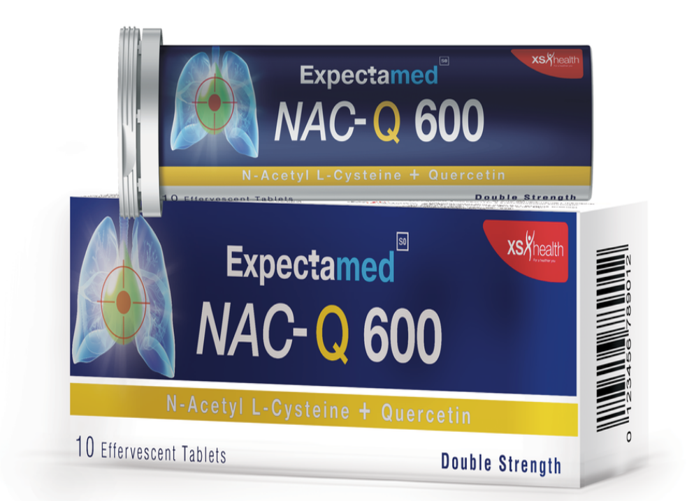 Expectamed NAC-Q 600 effervescent tablets with antibacterial, antioxidant and anti-inflammatory properties aids in the treatment of respiratory congestion and irritation.