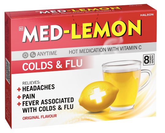 Med-Lemon Hot Medication Original 8 Sachets is a hot medication remedy that helps you fight off the symptoms of colds and flu, like headaches, pain and fever. Also contains vitamin C for added immune support.