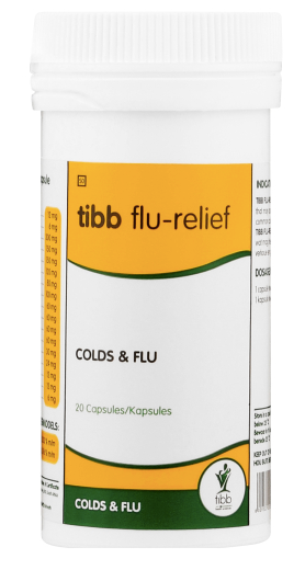 Tibb Colds & Flu Relief 20 Capsules may assist in the management of the symptoms of cold and flu, including fever, muscle aches and pains, sneezing and a stuffy nose.