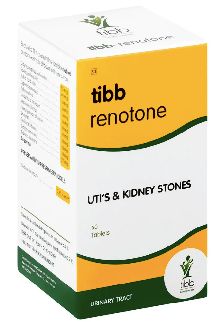 Tibb Renotone tablets, expertly formulated to support kidney health and urinary tract function. Our tablets are designed to break down kidney stones and prevent their formation, while also providing antimicrobial and anti-inflammatory effects to help alleviate symptoms of urinary tract infections. With a focus on natural ingredients and backed by scientific research, Tibb Renotone tablets are the ideal choice for maintaining optimal kidney and urinary tract health. Try them today and experience the difference!