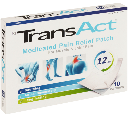 TransAct Muscle And Joints Pain Relief 12 Hour Patches 10’s are medicated, adhesive, anti-inflammatory patches that provide effective and uninterrupted relief from painful muscles and joints for up to 12 hours.