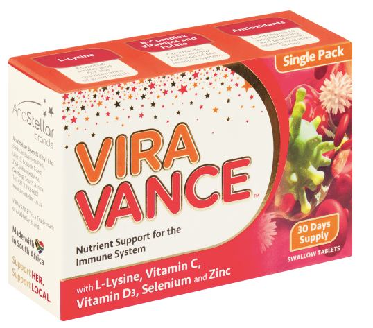 ViraVance Immune System Nutrient Support 30s is a health supplement that is expertly formulated to support oral health, the immune function and as an adjunct to antiviral agents. It contains Vitamin C, Vitamin D3, Selenium, Zinc, L-Lysine Active Folate, Active Vitamin B6, Active Vitamin B12 and Vitamin B3.